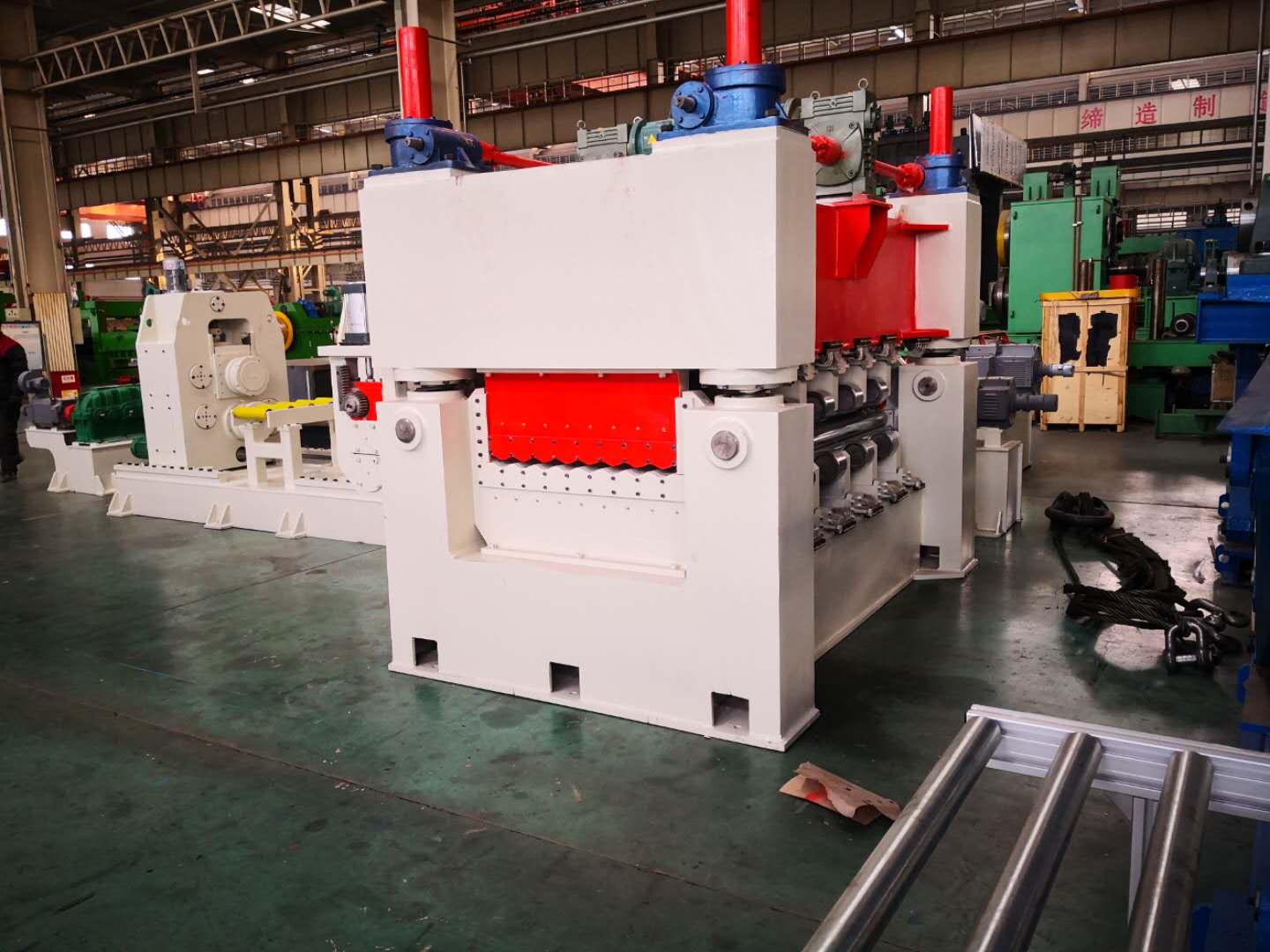 其校平機設備詳細配置能夠依據客戶要求而定的校平機輥數和重數,一般有兩重7、9、11、13輥和一般有四重11、13、15、17、19輥,六重17、19輥 。輥是由耐磨鍛鋼制成。跟著機器的寬度不同,每根校平輥在它的長度方向上,由一組或多組托輥支承,這樣可使校平輥直徑減到很小限度,輥的間隔也隨之減小。